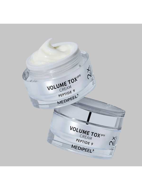 Senėjimą stabdantis kremas su peptidais MEDI-PEEL Volume TOX Cream Peptide 9 padidina odos stangrumą ir elastingumą, lygina ir sumažina raukšlių gylį, stiprina veido ovalą, išlygina reljefą ir palaiko optimalų drėgmės lygį. Pagerina visų ląstelių sistemų veiklą, saugo odą nuo senėjimo, atkuria apsauginį barjerą ir jaunina.
