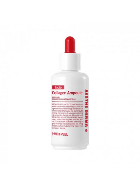 Kolagēna ampula ar laktobacillām un aminoskābēm Medi-Peel Red Lacto Collagen Ampoule padara ādu blīvāku un stiprāku, izlīdzina mikroreljefu, atjauno tvirtumu un elastību. Ampulai piemīt savelkošs efekts, palīdz cīņā pret paplašinātām porām, uzlabo ādas tekstūru. Satur kolagēnu, aminoskābes un laktobacillu kompleksu.