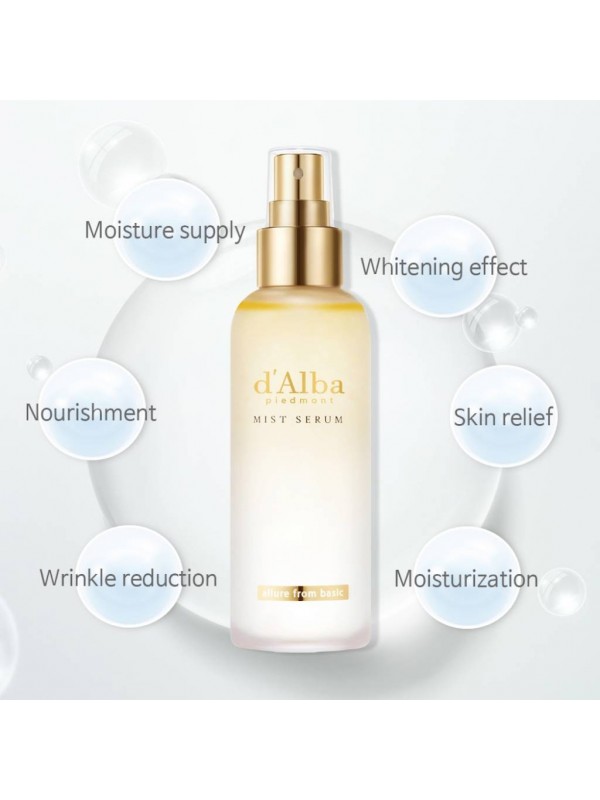 Концентрированная сыворотка d'Alba White Truffle Mist Serum на основе белого трюфеля и комплекса других натуральных экстрактов создана для моментального, питания и увлажнения кожи. Сыворотка выполнена в форме компактного миста, который легко наносится на кожу и без проблем помещается в сумочку, чтобы использовать его при необходимости увлажнить, освежить и тонизировать кожу в течение дня.